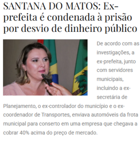 SANTANA DO MATOS: Ex-prefeita e agentes públicos são condenados por desvio de verbas do município
